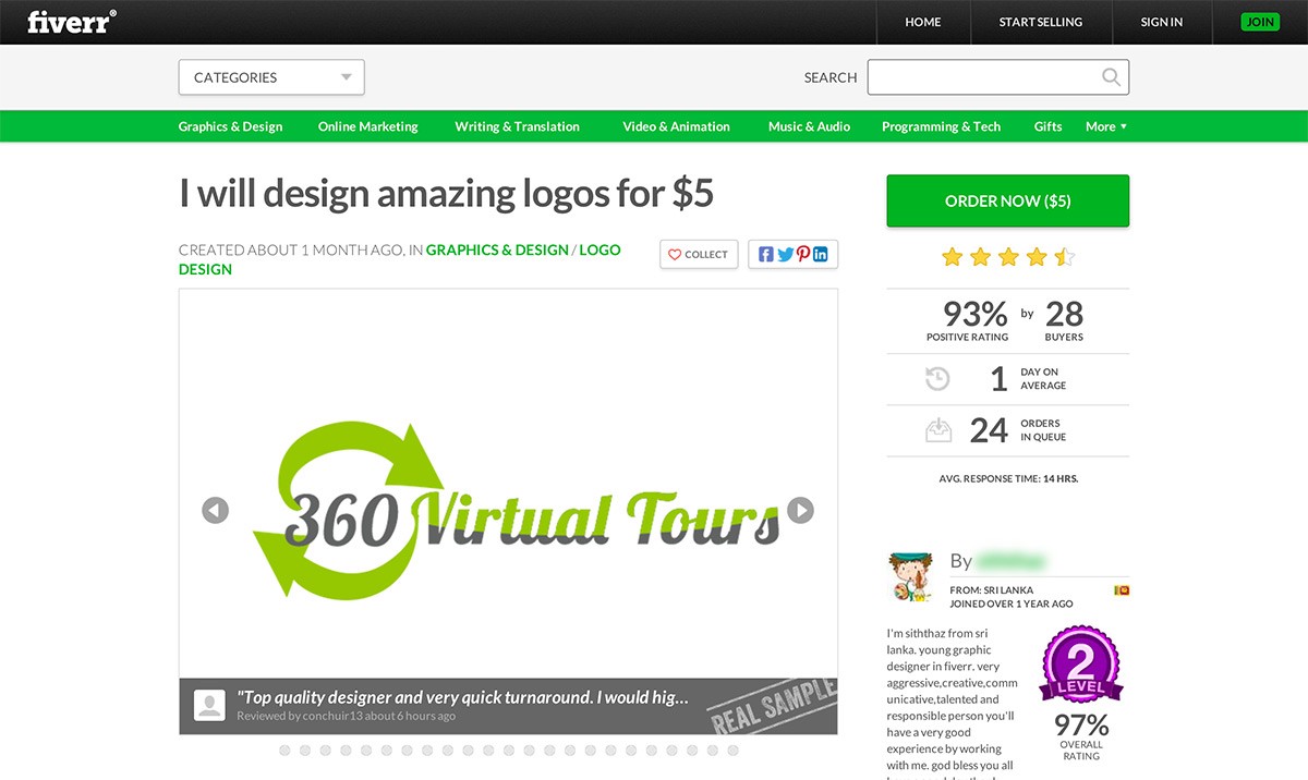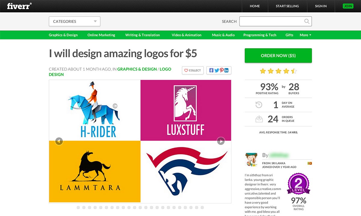 Por que você pagaria US$ 1000, quando você conseguiria 200 logos pela mesma quantia? Ao mesmo tempo, como alguém consegue viver criando logos por esse valor tão baixo? Ok, vamos investigar a concorrência!